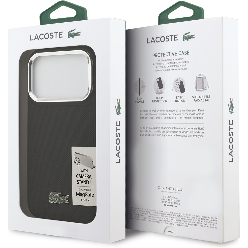 Lacoste Iconic Petit Pique Camera Stand MagSafe kryt iPhone 17 Pro černý