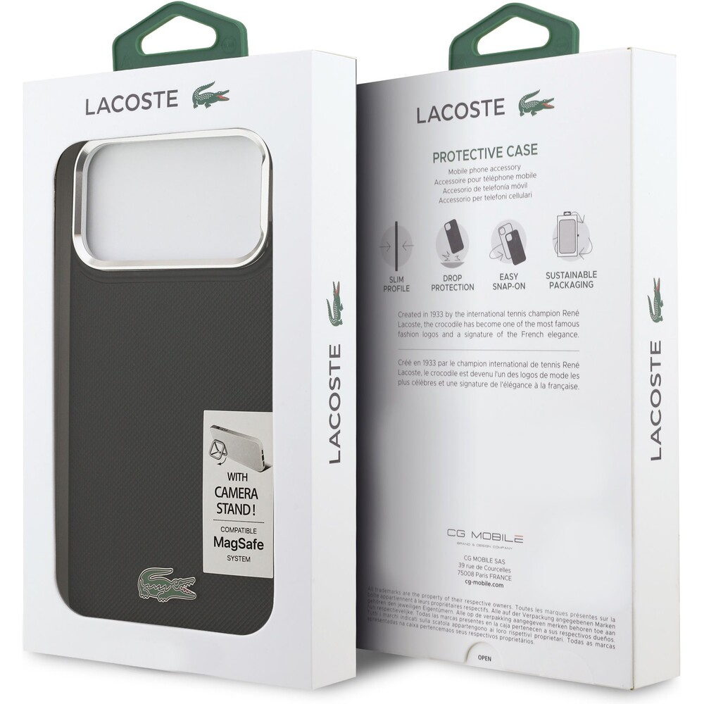 Lacoste Iconic Petit Pique Camera Stand MagSafe kryt iPhone 17 Pro Max černý