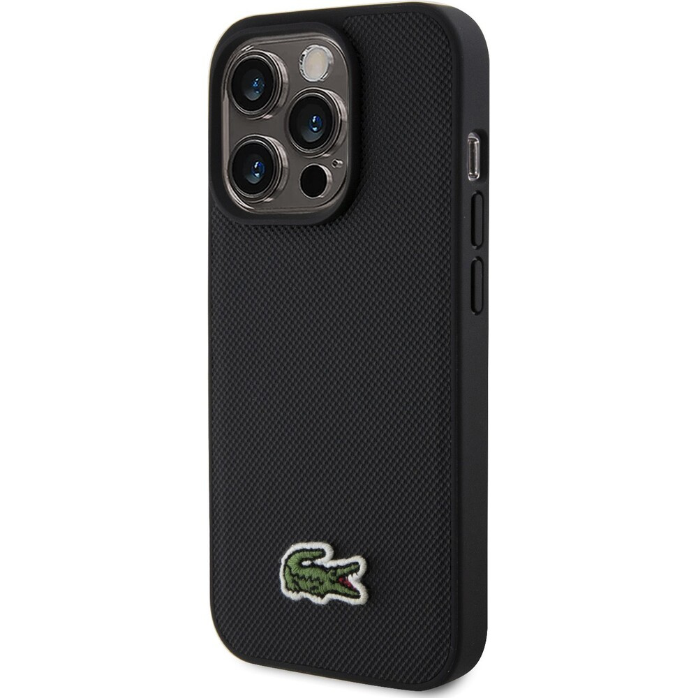 Lacoste Iconic Petit Pique Woven Logo MagSafe kryt iPhone 15 Pro černý + USB-C/USB-C kabel
