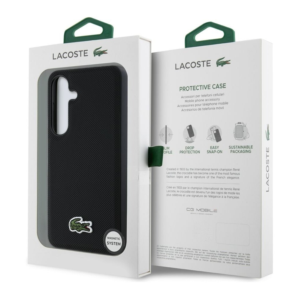 Lacoste Iconic Petit Pique Woven Logo MagSafe kryt Samsung Galaxy S25 černý