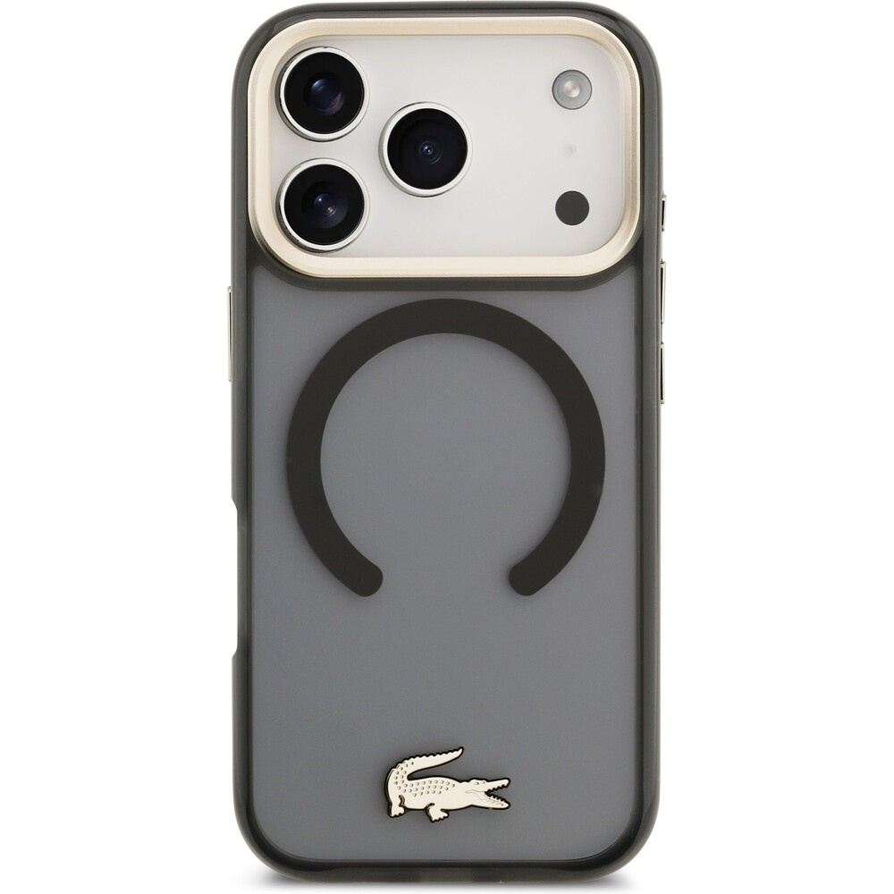 Lacoste PC/TPU Frosted Finish Gold Logo MagSafe kryt iPhone 17 Pro černý