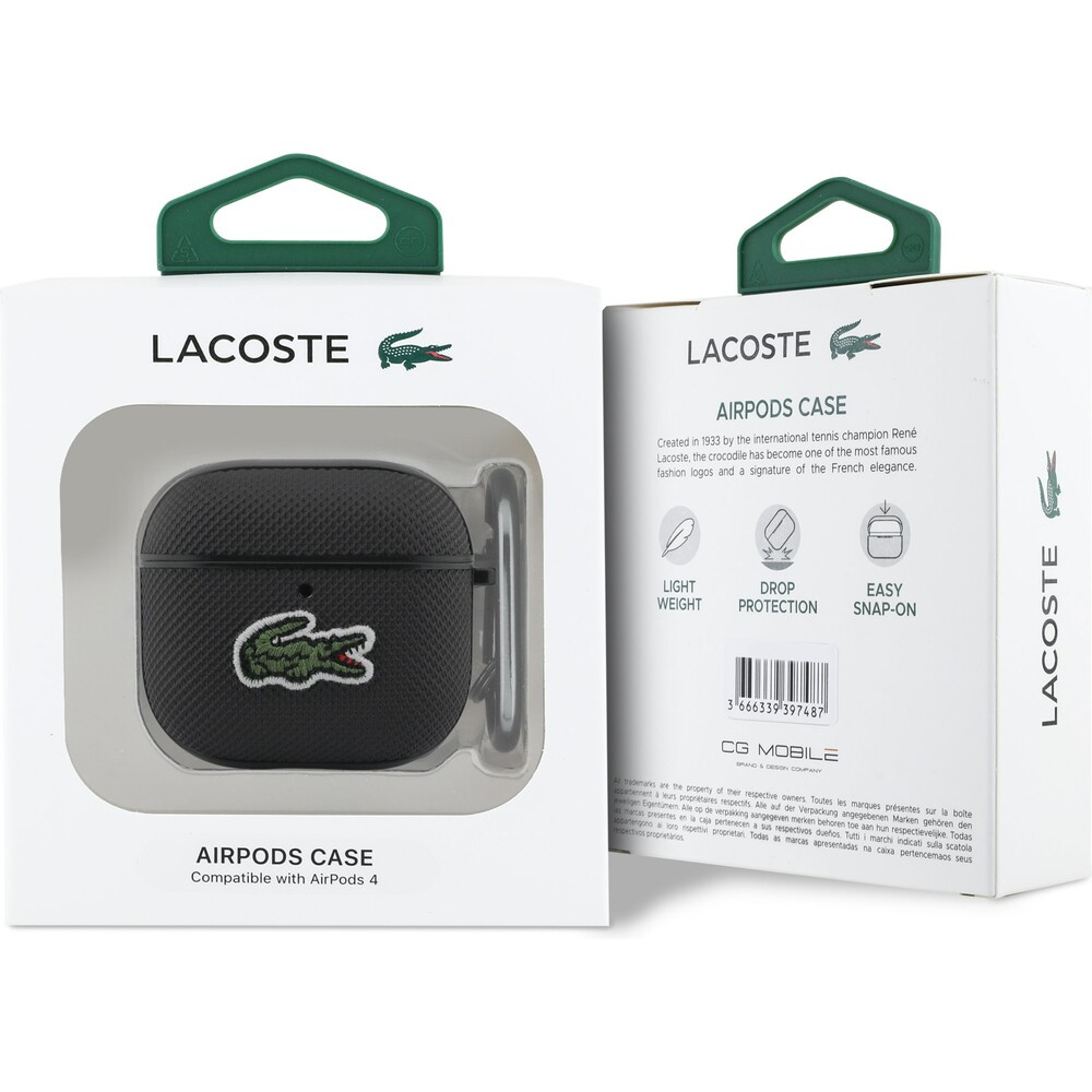 Lacoste Petit Pique Croc Logo Patch pouzdro AirPods 4 černé
