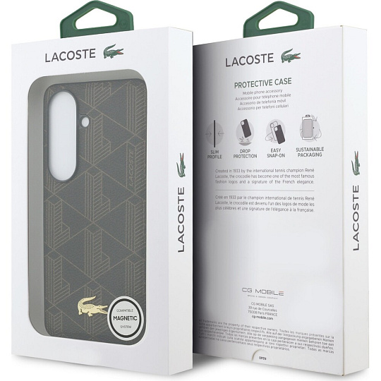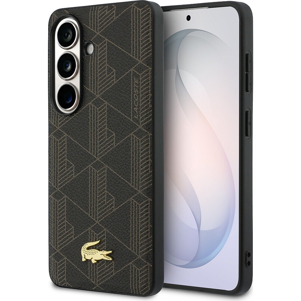Lacoste PVC Blend Monogram Gold Logo Magnetic kryt Samsung Galaxy S26 hnědý