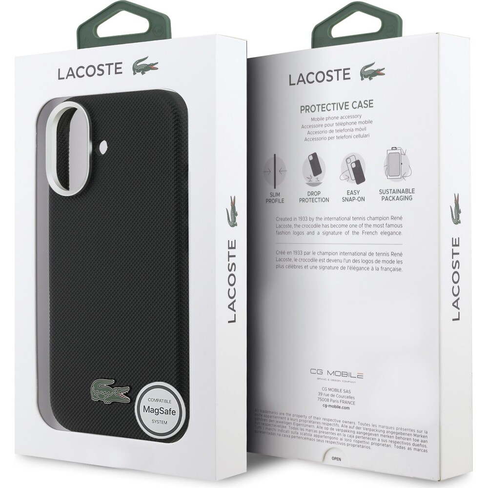 Lacoste PVC Iconic Petit Pique Metal Logo MagSafe kryt iPhone 17 černý