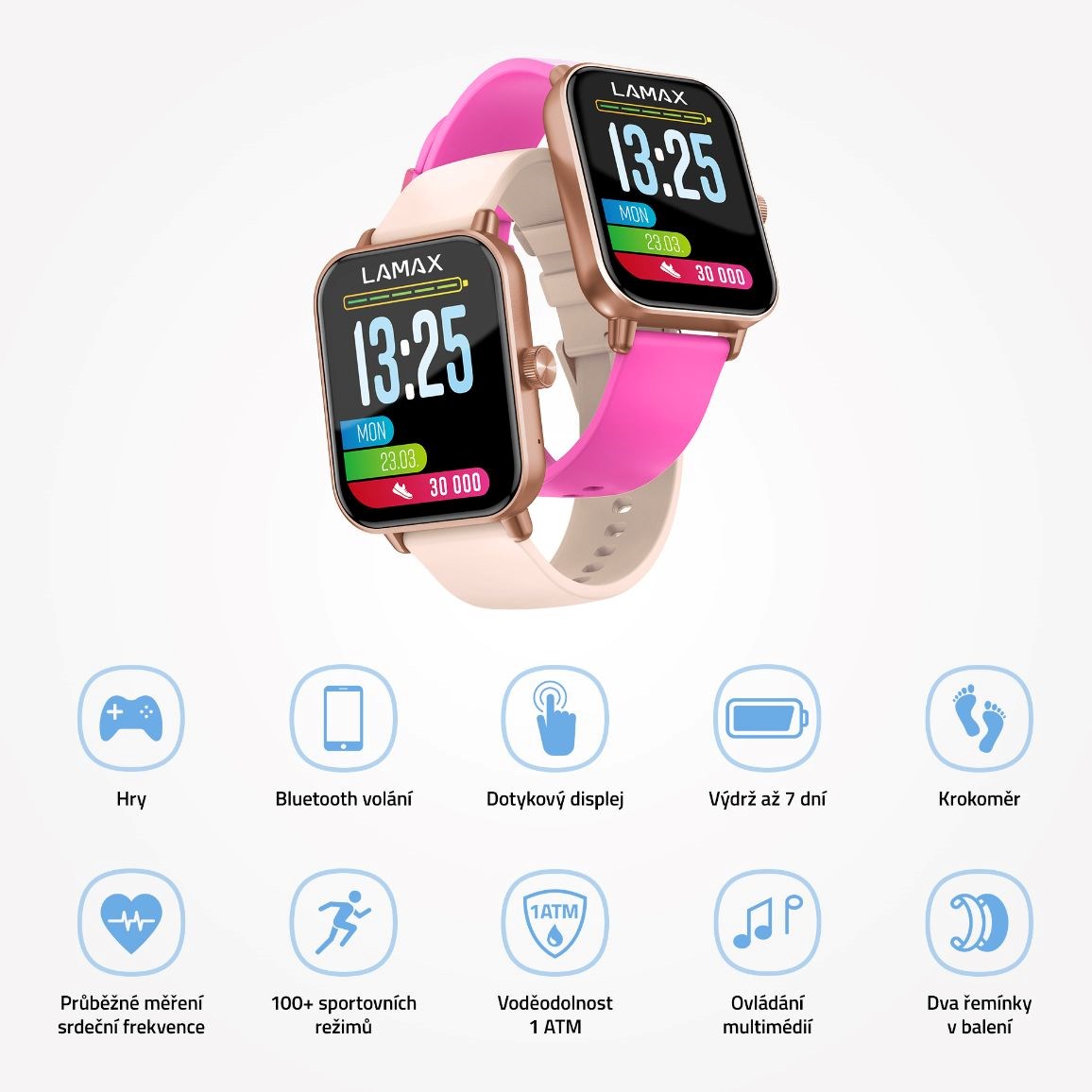 Držet děti od technologií je v podstatě nemožné, zvláště teenagery. Když už je ale mají, ať jsou jim maximálně užitečné. Chytré hodinky LAMAX BCool2 Play právě takovými parťáky jsou, dokonce umí sledovat zdravotní stav svého nositele. Primárně hodinky ukážou na přehledném displeji čas, podobu ciferníku si přitom lze vybrat. Slouží ale taky jako handsfree pro telefon díky BT Volání, od vybraných aplikací v mobilu můžou posílat notifikace a ovládat s nimi jde i multimédia jako třeba přehrávání muziky. Tyhle chytrý hodinky rozhýbou i pohodlného puberťáka, jsou přímo určeny k pohybu. Jejich 100+ sportovních režimů a krokoměr jasně ukážou, že vysedávání už bylo dost. Stejně důležitý je ale po námaze i odpočinek, hlavně kvalitní spánek a jeho sledování zvládají hodinky taky na výbornou. Co se hodí při plánování výprav za kámoši je předpověď počasí, dálková samospoušť zase pomůže pořídit parádní fotky celý partičky, který by s mobilem v ruce nešly. Užívat si výhod hodinek jde bez problémů až 7 dnů na jedno nabití, takže chvilky nudy si lze zkrátit hraním jedné ze dvou her.
