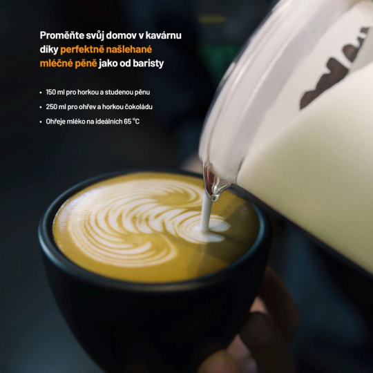 Napěňovač mléka disponuje širokou škálou různých módů zajišťujících teplé i studené napěňování nebo míchání. Svůj oblíbený nápoj si tak vychutnáte v klasické teplé verzi, ale rovněž v horkých dnech v ledové variantě. Speciální mód pro čokoládu pak potěší hlavně děti. Během chvíle připravíte mléko hned pro několik šálků, neboť kapacita nádoby činí pro ohřev 250 ml a pro napěňování 150 ml mléka. Vše díky tichému provozu zvládnete bez probuzení rodiny nebo vyrušení kolegy ve vedlejší kanceláři.