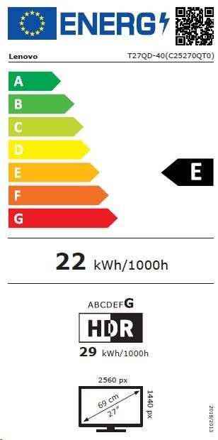 LENOVO LCD ThinkVision T27Q-40- 27",IPS,mat,16:9,2560x1440,178/178,4/6ms,350cd/m2,1500:1,CAM,DP,HDMI,PIVOT,VESA,3Y