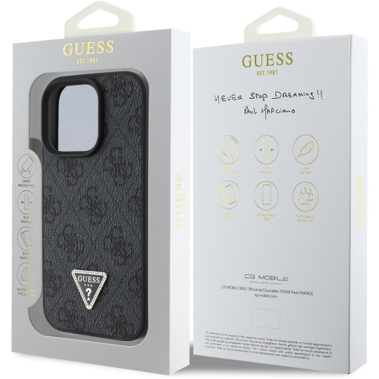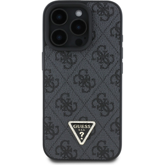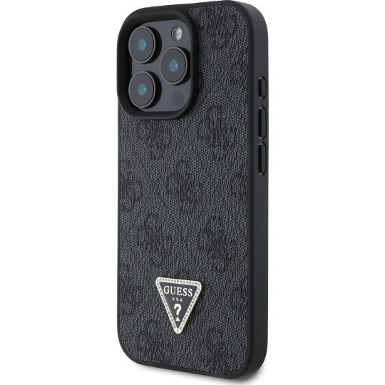 Guess PU 4G Strass Triangle Metal Logo kryt pro iPhone 16 Pro černý