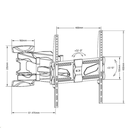 Levný otočný držák LCD Fiber Mounts DELTA781 Cenově výhodný spolehlivý a bezpečný držák na Tv 26-60", otočný, sklopný, délkově nastavitelný Potřebujete zavěsit televizi na spolehlivý a bezpečný držák a nechcete přitom moc utrácet? Můžeme Vám doporučit nástěnný Tv držák Fiber Mounts DELTA781. Vysoká nosnost 45kg, dvě velmi pevná ramena, zajištění televizoru proti vysazení, větší instalační plocha pro ukotvení do stěny. Držák nabízí pohodlné polohování televizoru - otáčení na obě strany, naklonění obrazovky mírně nahoru nebo dolů, nastavení vzdálenosti od zdi dle potřeby. Výsuv obrazovky probíhá v ose uchycení, proto je držák vhodný pro ukotvení nejen na stěnu, ale i do připravených výklenků nebo do obývacích stěn. Pokud se Vám nepovedla montáž přesně do roviny a obrazovka není po zavěšení ve vodováze, není potřeba provádět novou instalaci, snadno upravíte rovinu televize bez nutnosti reinstalace. Nástěnný úchyt i ramena držáku jsou opatřeny designovými krytkami, pod kterými můžete skrytě vést veškerou kabeláž. Barevné provedení je černé, na držák poskytujeme prodlouženou záruku na 3 roky. Levný, bezpečný a spolehlivý držák na všechny Tv s hmotností do 45kg, podpora VESA 100x100 až 400x400, otočný do stran, délkově nastavitelný, sklopný, TOP kvalita za skvělou cenu - držák Fiber Mounts DELTA781 Vynikající televizní držák za skvělou cenu Fiber Mounts DELTA781 - otáčení do stran, délkové nastavení, náklon, korekce roviny, vedení kabeláže, spolehlivost a bezpečnost. Technické údaje: nosnost 45kg podpora VESA standardu 100x100 až 400x400 doporučujeme na televizory s úhlopříčkou 26" až 60" vhodný na všechny typy televizorů - LCD, LED, OLED, QLED, plazma, 3D, Smart, prohnuté vhodný na všechny značky televizorů - Samsung, LG, SONY, Panasonic, ECG, GoGEN, Hisense, Changhong, Hyundai, Orava, Philips ... nastavitelná vzdálenost od zdi 57mm až 470mm otáčení Tv na obě strany +/- 75° náklon obrazovky nahoru i dolů +2° až -12° korekce roviny obrazovky +/- 3° instalační plocha na stěnu o rozměrech 160mm x 235mm (šířka x výška) zajištění televizoru proti vysazení integrovaná vodováha pro usnadnění montáže velmi snadné polohování bezpečná a spolehlivá ocelová konstrukce designové kryty ramen pro skryté vedení veškeré kabeláže součástí balení je univerzální instalační sada (šrouby, vruty, hmoždinky, podložky) barevné provedení černé prodloužená záruka 3 roky Spolehlivý držák na všechny značky Tv - Sony, Samsung, Panasonic, GoGEN, Hyundai, Panasonic, Sencor, Philips, Changhong, Hisense, Hitachi - držák Tv Fiber Mounts DELTA781 Držák podporuje VESA standardy pro zavěšení televizorů: VESA 100x100 VESA 200x100 a 100x200 VESA 200x200 VESA 300x100 a 100x300 VESA 300x200 a 200x300 VESA 300x300 VESA 400x100 a 100x400 VESA 400x200 a 200x400 VESA 400x300 a 300x400 VESA 400x400 Držák Tv Fiber Mounts DELTA781 je vhodný pro zavěšení všech typů, značek a velikostí Tv, které mají hmotnost do 45kg a které podporují některý z výše uvedených VESA standardů. Na velikosti televizoru přímo nezáleží, můžete zavěsit i větší televizory za splnění výše uvedených podmínek..