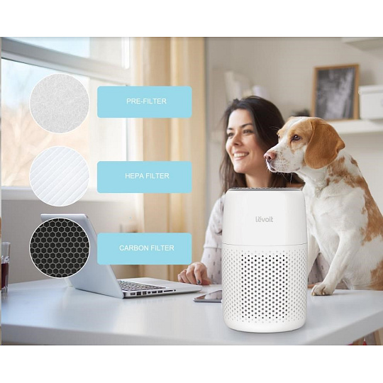 Druhou vrstvou je HEPA filtr H13. To odlišuje Levoit od konkurence, protože filtr HEPA H13 je mnohem kvalitnější a spolehlivější než běžně používané HEPA H11. Tu se odfiltrují jemné prachové částice, plíseň, bakterie, pyl, kouřové částice, roztoče a srst.