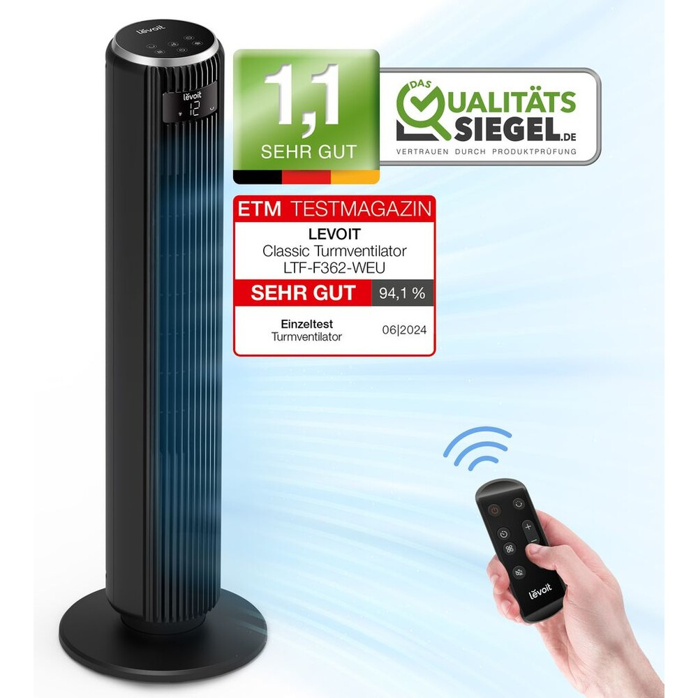 Levoit TempSense F362 DC Vortex Tower Fan automatický ventilátor černý