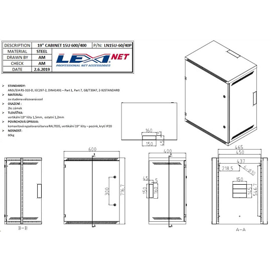 LEXI-Net 19" nástěnný rozvaděč 15U