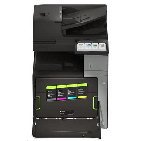 .Part Number 20L8300 Print Technology Color Laser Function Color Copying Color Faxing Color Printing Color Scanning Trusted Platform Module (TPM) The Trusted Platform Module (TPM) is not available in some countries. Workgroup Size Large Workgroup Touch Screen Display Yes Display Lexmark e-Task 10-inch (25 cm) class color touch screen Print Speed (Letter, Black) Up to 55 ppm4 Print Speed (Letter, Color) Up to 55 ppm4 Print Speed (Letter, Black) Duplex Up to 55 spm4 Print Speed (Letter, Color) Duplex Up to 55 spm4 Time to First Page (Black) As fast as 7.1 seconds Time to First Page (Color) As fast as 8.2 seconds Duplex (2-sided) Printing Integrated Duplex Print Resolution, Black 1200 x 1200 dpi 4800 Color Quality Print Resolution, Color 1200 x 1200 dpi 4800 Color Quality Copy Speed (Letter, Black) Up to 55 cpm4 Copy Speed (Letter, Color) Up to 55 cpm4 Copy Speed (Letter, Black) Duplex Up to 55 spm4 Copy Speed (Letter, Color) Duplex Up to 55 spm4 Time to First Copy (Black) As fast as 8.5 seconds Time to First Copy (Color) As fast as 9.5 seconds Reduce / Enlarge Range 25 - 400 % A4/Ltr Simplex Scan Speed (Black) Up to 120/120 sides per minute A4/Ltr Simplex Scan Speed (Color) Up to 120/120 sides per minute A4/Ltr Duplex Scan Speed (Black) Up to 240/240 sides per minute A4/Ltr Duplex Scan Speed (Color) Up to 240/240 sides per minute Scan Area, Maximum 11.69 x 17.0 inches ADF Scan DADF (single pass Duplex) Scanner Type Flatbed scanner with automatic document feeder Scan Resolution, Enhanced 600 x 600 dpi Scan Resolution, Optical 300 x 300 dpi Optical Scanning Resolution 300 X 300 dpi Scan File Formats (Send as) JPEG, JPG PDF Secure PDF TIFF Archival PDF (A-1a, A-1b) Searchable PDF TXT RTF DOCX Scan Destinations e-mail FTP USB Flash drive USB or Network connected computer Processor Speed Quad Core, 1.2 GHz Memory, Standard 4 GB Memory, Maximum 4 GB Hard Disk Intelligent Storage Drive included; Magnetic Hard Disk available Apple Operating Systems Supported Support is provided through AirPrint and AirScan only Citrix MetaFrame Microsoft Windows Server 2012 R2 Datacenter Edition running Citrix XenApp 7.5, 6, 7, 8, 9, 11, 12, 13, 14, 15, 16 Microsoft Windows Server 2012 Datacenter Edition running Citrix XenApp 7.5, 6, 7, 8, 9, 11, 12, 13, 14, 15, 16 Microsoft Windows Server 2012 Foundation running Citrix XenApp 6.0, 6.5 Microsoft Windows Server 2012 Essentials running Citrix XenApp 6.0, 6.5 Microsoft Windows Server 2012 Standard running Citrix XenApp 6.0, 6.5 Linux Operating Systems Supported Ubuntu 20.04 Debian 10 SUSE Linux Enterprise Server 12 SP5 OpenSUSE 15.2 Debian 11 Ubuntu 22.04 Fedora 36 Fedora 37 SUSE Linux Enterprise Server 15 SP4 OpenSUSE 15.4 Red Hat Linux 8.7 Red Hat Linux 9.1 Microsoft Windows Operating Systems Supported Windows Vista Windows Vista x64 Windows Server 2008 Windows Server 2008 x64 Windows Server 2008 running Terminal Services Windows Server 2008 x64 running Terminal Services Windows 7 Windows 7 x64 Windows Server 2008 R2 Windows Server 2008 R2 running Terminal Services Windows 8 Windows 8 x64 Windows Server 2012 Windows 8.1 Windows Server 2012 R2 Windows 10 Windows Server 2016 Windows Server 2019 Windows Server 2022 Windows 11 Novell Operating Systems Supported Novell NetWare 6.5 Open Enterprise Server Novell Open Enterprise Server 2 (SP3) on SuSE Linux Enterprise Server 10 SP4 (x86 and x64) 3 Novell Open Enterprise Server 11 (SP3) on SuSE Linux Enterprise Server 11 SP4 (x86 and x64) Novell Open Enterprise Server 11 (SP3) on SuSE Linux Enterprise Server 12 SP1 (x86 and x64) Novell Open Enterprise Server 15 (SP1) on SuSE Linux Enterprise Server 11 SP4 (x86 and x64) Other Operating Systems Supported Virtually any platform supporting TCP/IP Included Paper Handling 550-Sheet Tray 150-Sheet Multipurpose Feeder 500-Sheet Output Bin Optional Paper Handling 550-Sheet Tray Offset Stacker 500-Sheet Staple Offset Finisher 2 x 550-Sheet Tray 2000-Sheet Tandem Tray Cabinet 1,500-Sheet High-Capacity Tray Paper Transport Unit Folding Paper Transport Unit 1,250-Sheet Staple Hole Punch Finisher 2,250-Sheet Booklet Staple Hole Punch Finisher Paper Input Capacity, Standard Up to 700 pages 20 lb or 75 gsm bond Paper Input Capacity, Maximum Up to 4750 pages 20 lb or 75 gsm bond Paper Output Capacity, Standard Up to 500 pages 20 lb or 75 gsm bond Paper Output Capacity, Maximum Up to 2650 pages 20 lb or 75 gsm bond Paper Weight Range Supported - Standard Tray (lb.) 16 - 80 lb. Paper Weight Range Supported - Multipurpose Feeder (lb.) 16 - 80 lb. A3 / 11 x 17 Yes ADF 300-Sheet Automatic Document Feeder ADF Paper Input Capacity Up to 300 pages 20 lb or 75 gsm bond ADF Paper Output Capacity Up to 300 pages 20 lb or 75 gsm bond Finishing Option Yes Finishing Functions Offset stacking Stapling Hole punching Number of Paper Inputs, Standard 2 Number of Paper Inputs, Maximum 6 Media Types Supported Card Stock Envelopes Glossy Paper Labels Plain Paper Vinyl Labels Refer to the Paper & Specialty Media Guide Media Sizes Supported 10 Envelope 7 3/4 Envelope 9 Envelope A3 A4 A5 B5 Envelope C4 Envelope C5 Envelope DL Envelope Hagaki Card Executive Folio JIS-B4 JIS-B5 Ledger Legal Letter Statement Oficio A6 SRA3 Standard Ports USB 2.0 Specification Hi-Speed Certified (Type B) Gigabit Ethernet (10/100/1000) Front USB 2.0 Specification Hi-Speed Certified port (Type A) 802.11a/b/g/n/ac + Apple iBeacon Optional Local Ports Internal RS-232C serial Internal 1284-B Bidirectional Parallel Optional Network Ports MarkNet N8230 Fiber Ethernet Print Server Direct USB Yes Ethernet Network Yes Wireless Yes Wireless Network WPA2™ - Personal WPA™ and WPA2™ - Personal 802.1x Authentication: MD5, MSCHAPv2, LEAP, PEAP, TLS, TTLS Network Protocol Support TCP UDP IPSEC w/ IPv4 IPSEC w/ IPv6 ICMP IGMP IPv4 IPv6 Network Printing Methods Direct IP (Port 9100) Enhanced IP (Port 9400) FTP IPP 1.0, 1.1, 2.0 (Internet Printing Protocol) Microsoft Web Services WSD Pull Printing Thin Print LPR Network Management Protocols WINS AP