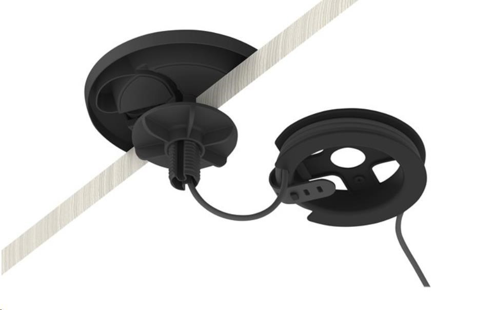 Naviňte přebývající kabeláž na kabelovou cívku, čímž dosáhnete úhledného vzhledu konferenčního stolu nejen při pohledu seshora, ale i zespoda. Připevněte kabelovou cívku přímo k držáku stolních mikrofonů nebo k jinému povrchu pomocí přiloženého upevňovacího materiálu.
