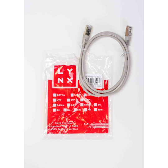 LYNX patch kabel Cat5E, FTP - 0,5m, šedý (prodej po 10 ks)