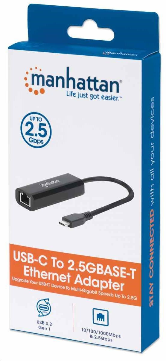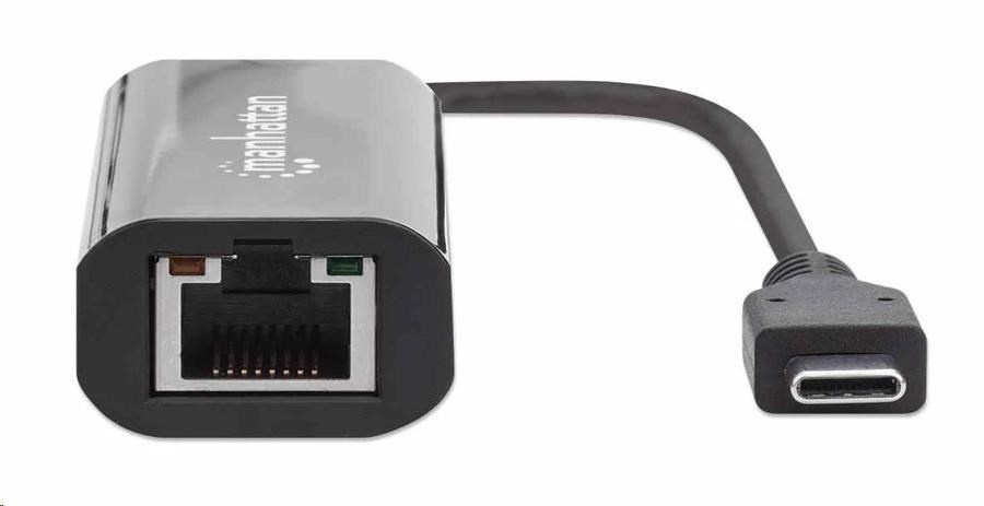 Manhattan adaptér USB-C na 2.5GBASE-T Ethernet, USB 3.2 Gen 1; 10/100/1000 Mbps & 2.5 Gbps, černá