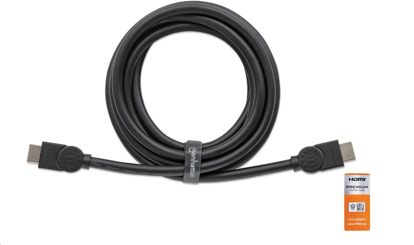 MANHATTAN Kabel HDMI Premium High Speed + Ethernet, 5m, černý