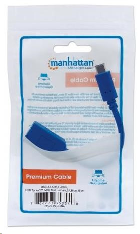 MANHATTAN Kabel USB 2.0 A - USB 3.1 C (F/M), modrý