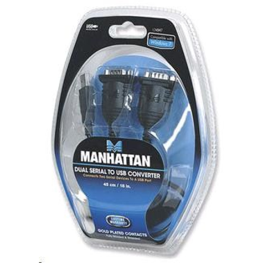 MANHATTAN převodník z USB na 2x sériový port (USB AM/DB9M(2), RS232)