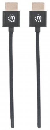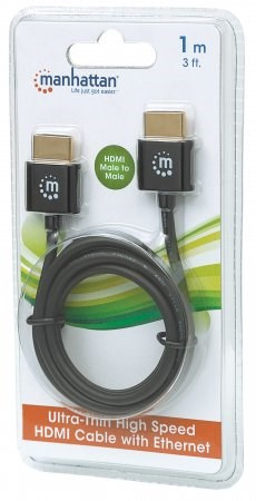 HDMI has become the standard digital connection, delivering the highest-quality audio and video signal over a single cable. With an ultra-thin, tangle-resistant design, gold-plated contacts and a sturdy yet slim PVC jacket, Manhattan Ultra-thin High Speed HDMI Cables are carefully constructed to meet the evolving needs of the ultra high-definition marketplace. Manhattan High Speed HDMI Cables provide the highest resolution possible at 4K x 2K, an audio return channel and a bandwidth of 18 Gbps at 600 MHz. These high-quality cables provide ultra high-definition video and multichannel, digital audio with increased performance characteristics and greater accuracy. Expanded features include Internet connectivity for home entertainment devices using a single HDMI connection. Plus, this cable's unique design makes it easy to handle and shape without worrying about snags and tangles.