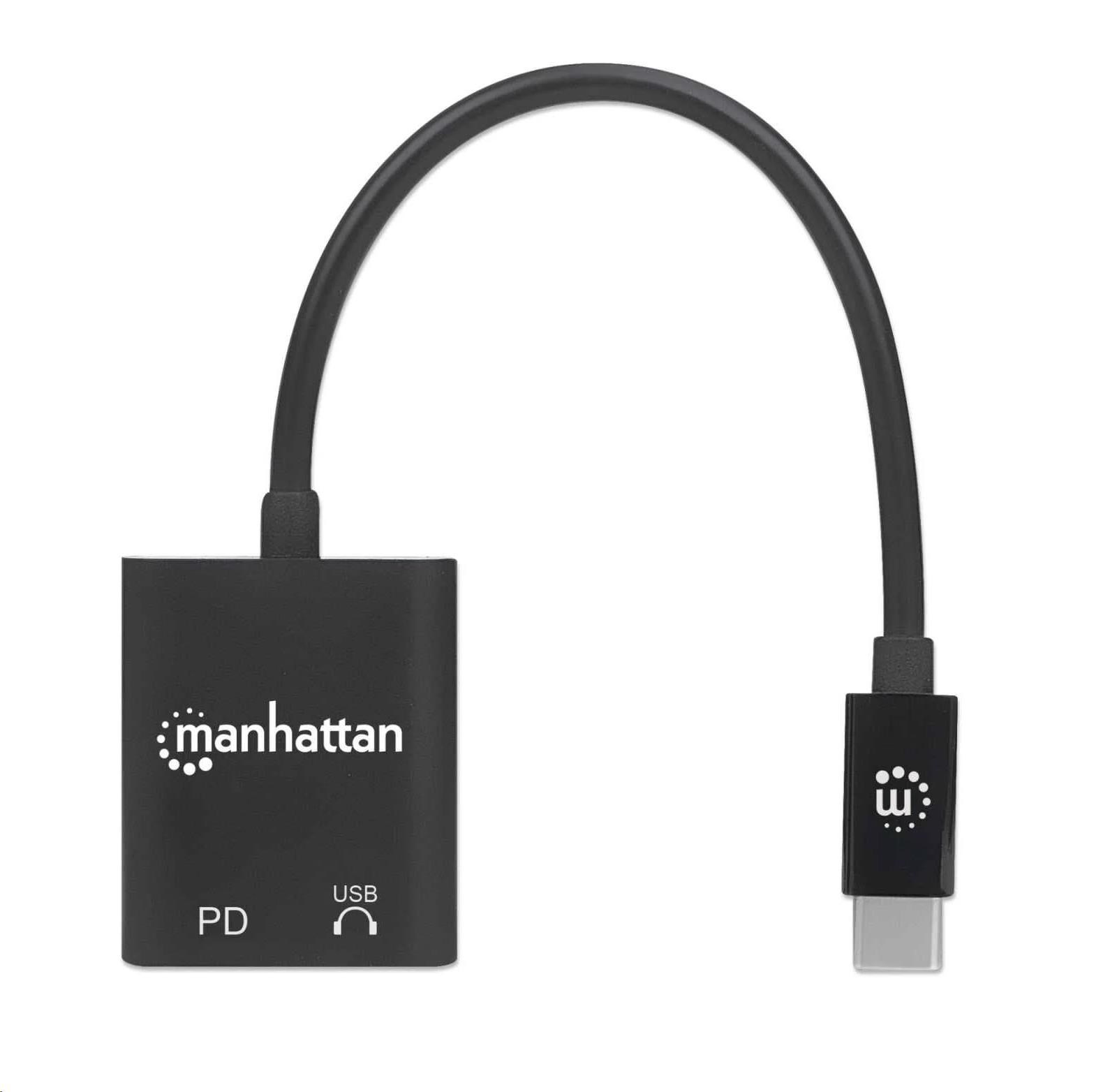 MANHATTAN USB 2.1 Sound Adapter, USB Type-C to C/F (audio) & C/F (PD) black, Retail Box