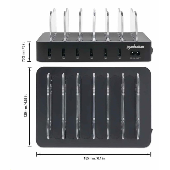 The Manhattan 6-Port USB Charging Station is a great way to charge the devices you use most, whether at home, school or the office. It features six wide bays for securing most devices — with cases — while charging, keeping your countertop clean and clutter-free.