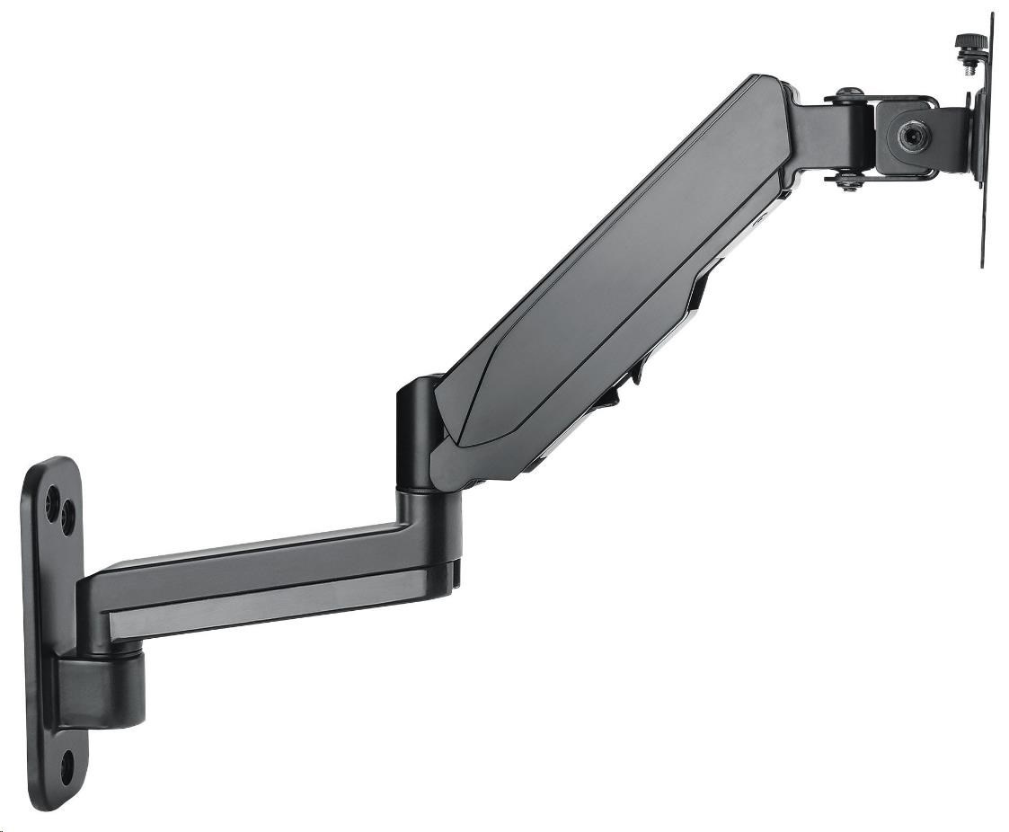The Manhattan Universal Gas Spring Monitor Mount offers a single-jointed gas-spring arm that securely holds one 17" to 32" TV or monitor. This mount's gas spring promotes easy movement of the display to a more comfortable viewing angle with the lightest touch. Designed to give back much needed desktop real estate and maximize productivity, the Manhattan Universal Gas Spring Monitor Mount provides more flexibility, reach, and overall enjoyment of whatever task is at hand.
