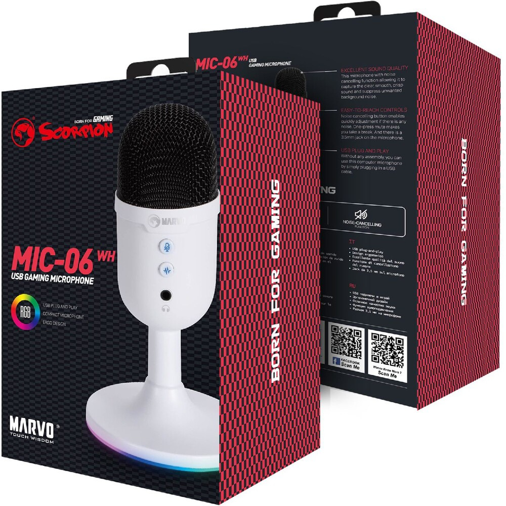 Marvo MIC-06 RGB streamovací mikrofon bílý