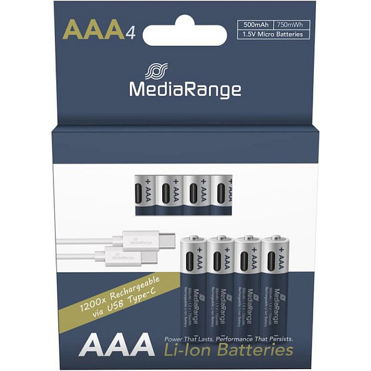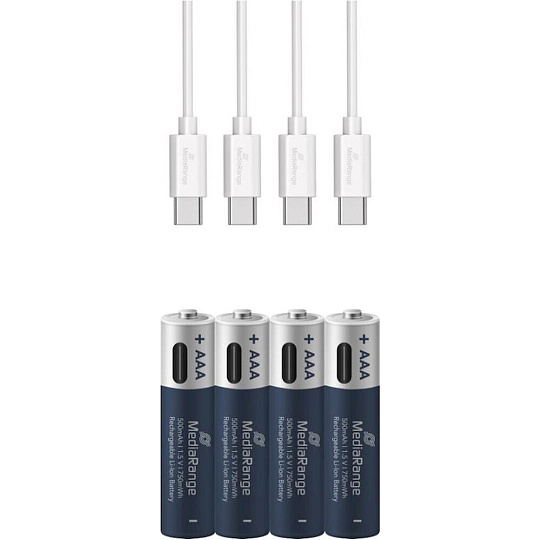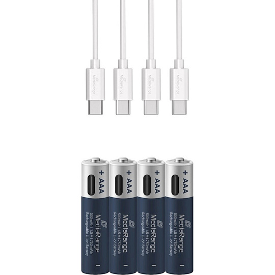 MediaRange nabíjecí USB-C Li-Ion baterie Micro AAA 1,5V 500 mAh 4ks