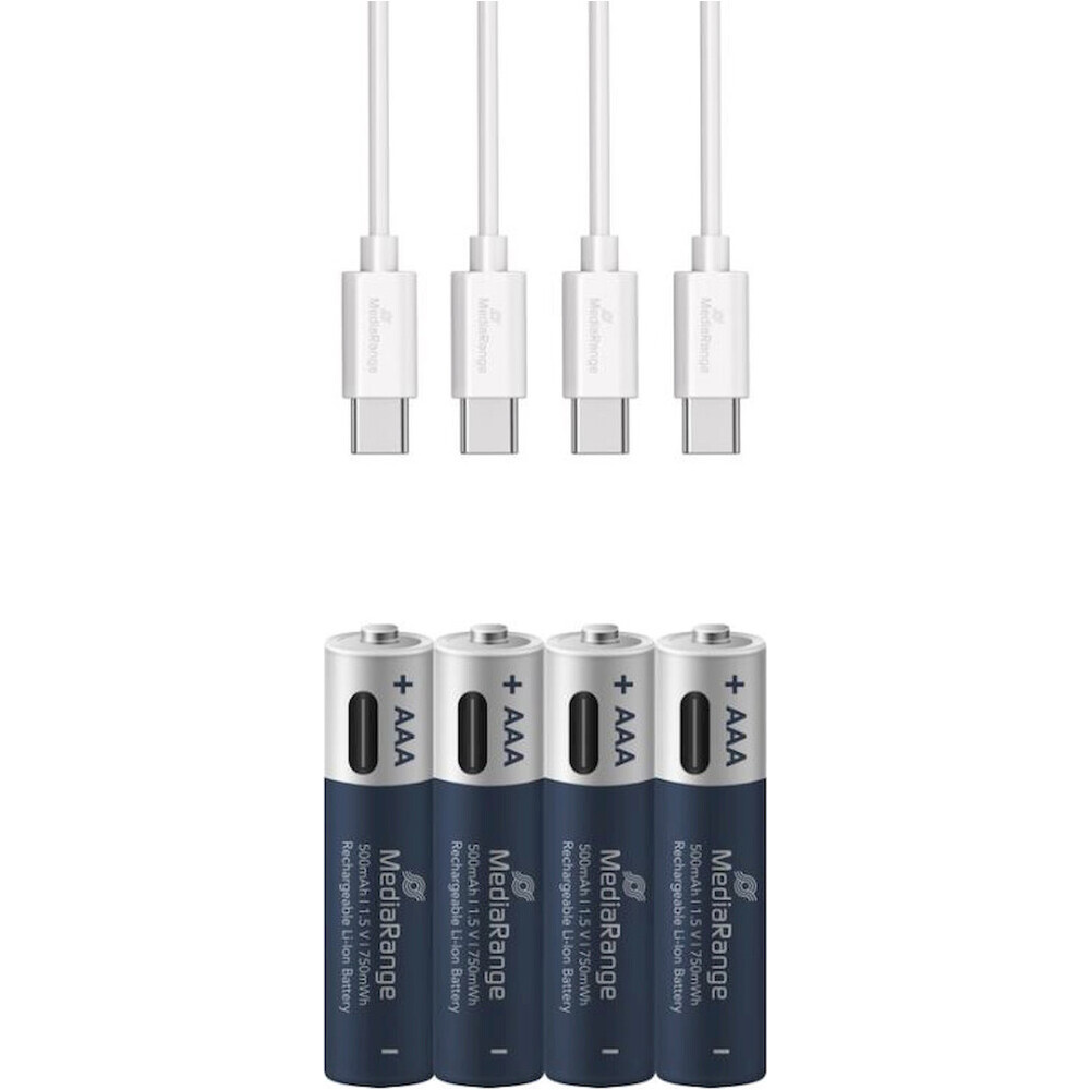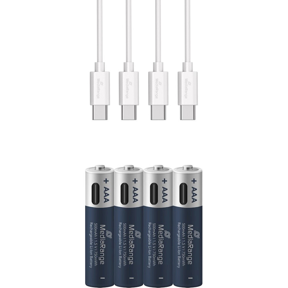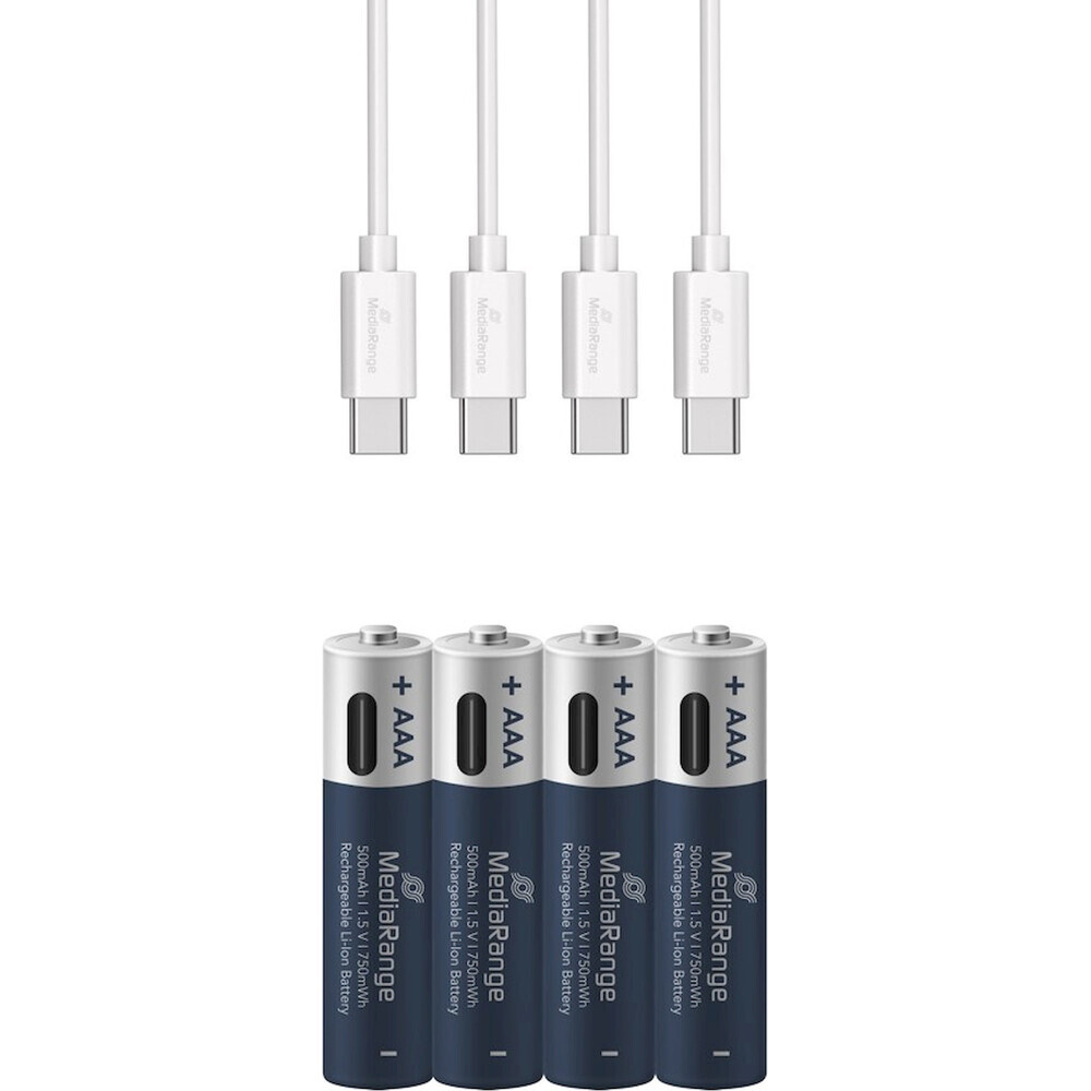MediaRange nabíjecí USB-C Li-Ion baterie Micro AAA 1,5V 500 mAh 4ks