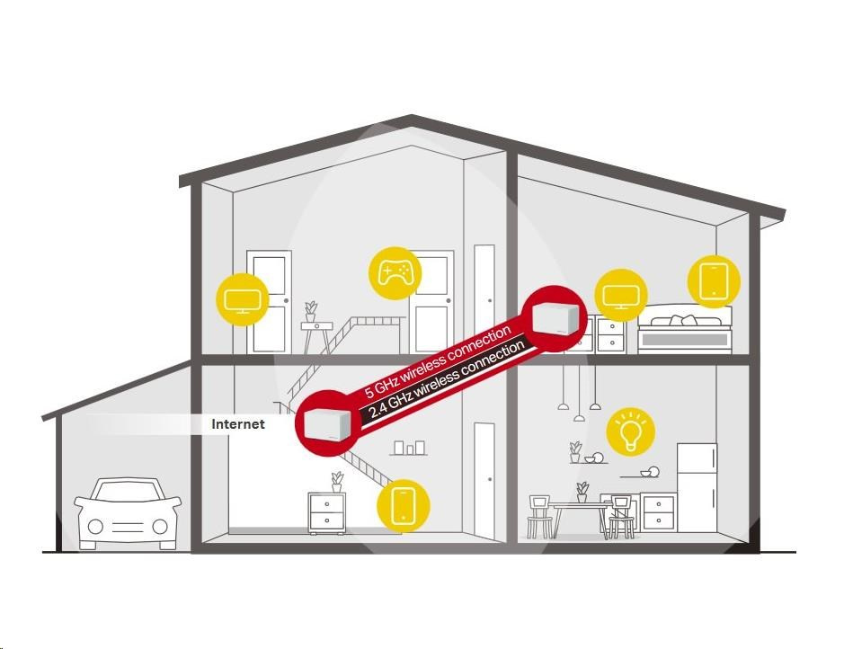 - Pokrytí celé domácnosti – pokrytí prostoru až 650 m2 vysokorychlostní sítí Wi-Fi, která eliminuje mrtvé zóny Wi-Fi pokrytí ve vaší domácnosti.