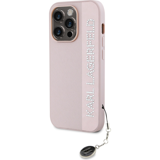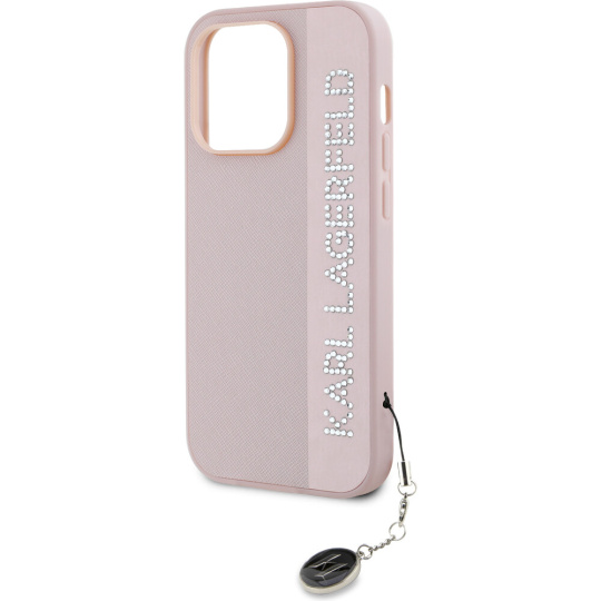 Karl Lagerfeld PU Saffiano Rhinestone Charm zadní kryt iPhone 14 Pro růžový