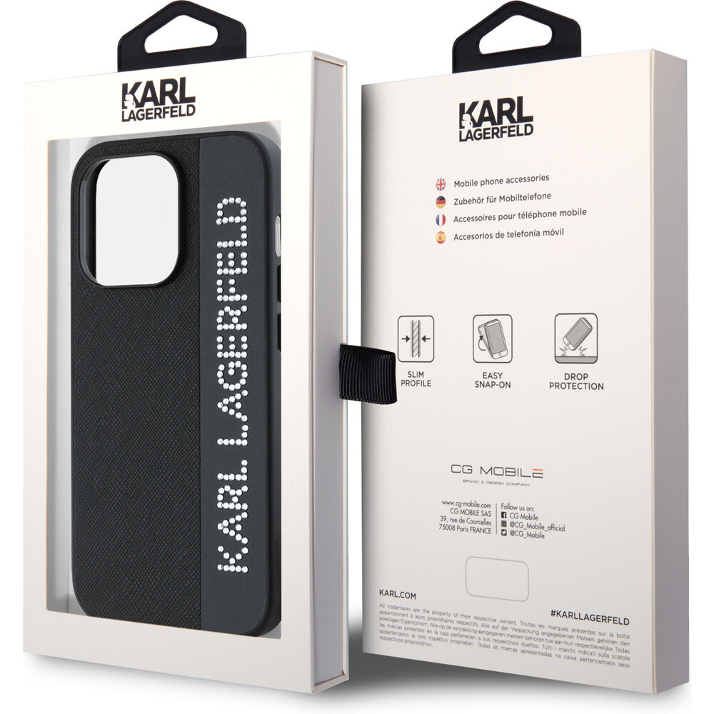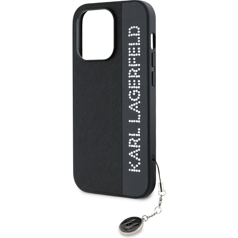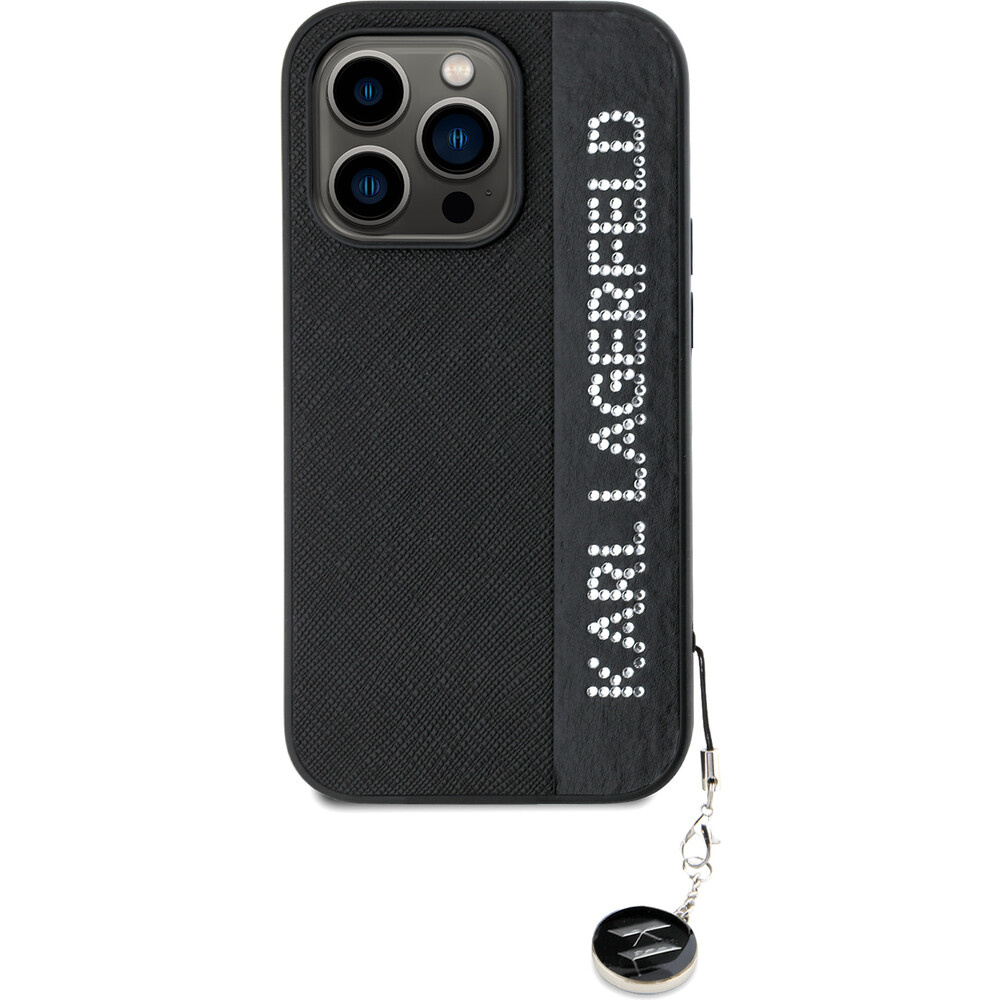 Karl Lagerfeld PU Saffiano Rhinestone Charm zadní kryt iPhone 14 Pro černý