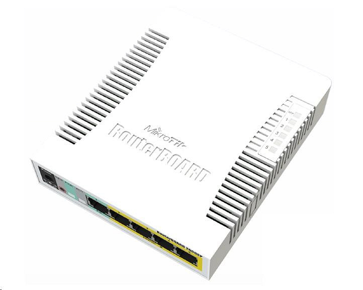 MikroTik RouterBOARD CSS106-1G-4P-1S (RB260GSP), TF470 CPU,nastavitelný switch, 5x LAN, 1xSFP slot, PoE OUT, vč. SwOS