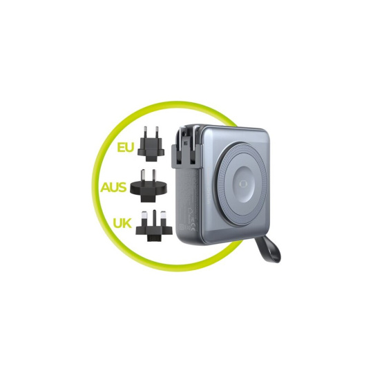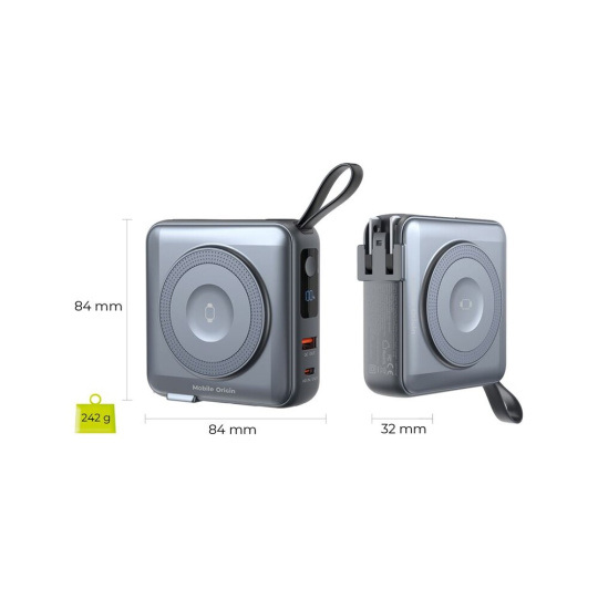 Mobile Origin PowerBank & Travel Charger, Lightning/USB-C kabel, MagSafe šedá