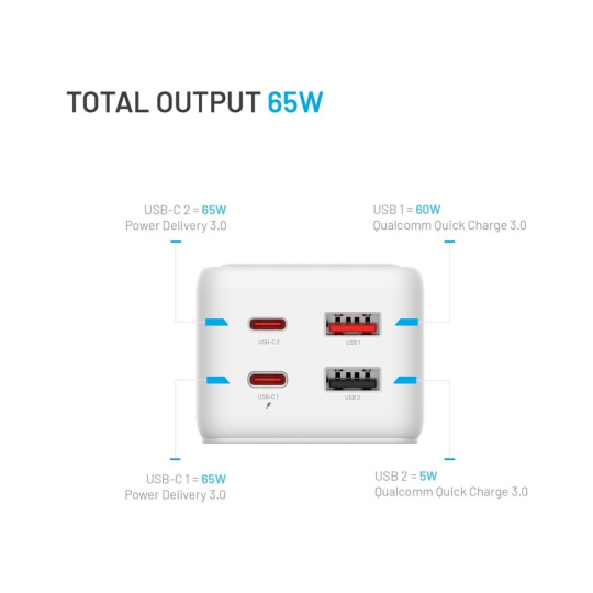 FIXED Charging Strip prodlužovací adaptér s USB-C/USB-A, GaN III, 1,5m, PD 65W, bílý