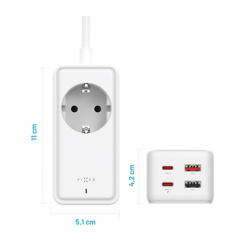 FIXED Charging Strip prodlužovací adaptér s USB-C/USB-A, GaN III, 1,5m, PD 65W, bílý