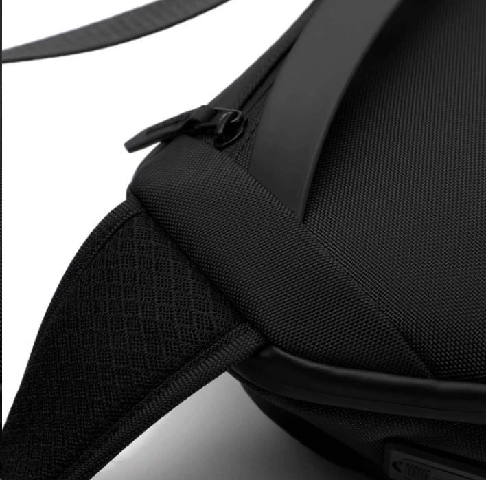 Popruh je polstrovaný a nastavitelný, skvěle se přizpůsobí zádům.