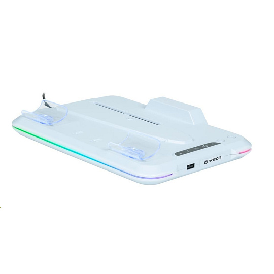 Umístěte svou herní konzoli PlayStation 5 Slim na tento víceúčelový vertikální podstavec od společnosti Nacon. Ten je kompatibilní s diskovou i digitální verzí této konzole a kromě dvou větráčků a jednoho portu USB-A na něm najdete také dvě kolébky sloužící k nabíjení herních ovladačů DualSense, přičemž o stavu jejich nabíjení vás informuje barevné podsvícení pod jednotlivými ovladači.