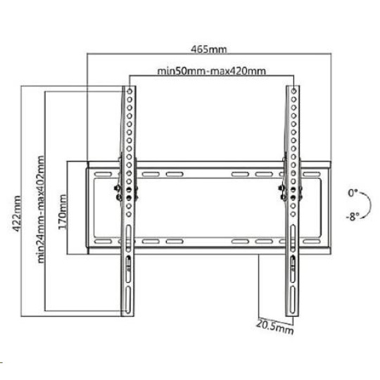 Náklopný držák Tv Fiber Mounts F7M74 Sklopný držák na televize s hmotností až 35kg a podporou VESA 75x75 až 400x400 Univerzální sklopný držák pro zavěšení všech typů televizorů - LCD, LED, plazmové, smart, 3D, prohnuté i OLED a QLED.. Po zavěšení televize na držák je možné obrazovku mírně naklopit až o 8° směrem dolů. Držák má ocelovou konstrukci, kterou je možné dát televize s hmotností až 35kg. Podporuje zavěšení všech televizorů s VESA standardem 75x75 až 400x400. Barevné provedení černé. Záruka 10 let. Držák dodáváme včetně veškerého instalačního materiálu - hmoždinky, vruty, sada šroubů a podložek. Levný držák na Tv s naklopením Fiber Mounts F7M74 Technické údaje: nosnost 35kg podporuje VESA standardy 75x75 až 400x400 ideální na Tv s úhlopříčkou 19" až 55" univerzální, zavěšení všech typů televizorů možnost naklonění obrazovky směrem dolů od 0° do -8° vzdálenost televizoru od zdi 21mm je opravdu malá, ale dostatečná pro spolehlivé odvětrávání konstrukce držáku je ocelová zajištění televizoru proti vysazení - 2x šroub rozměr držáku pro uchycení na stěnu 465x170mm barevné provedení černé záruka 10 let Držák Tv podporuje VESA standardy pro zavěšení: VESA 75x75 VESA 100x100 VESA 200x100 a 100x200 VESA 200x200 VESA 300x200 a 200x300 VESA 300x300 VESA 400x200 a 200x400 VESA 400x300 a 300x400 VESA 400x400.