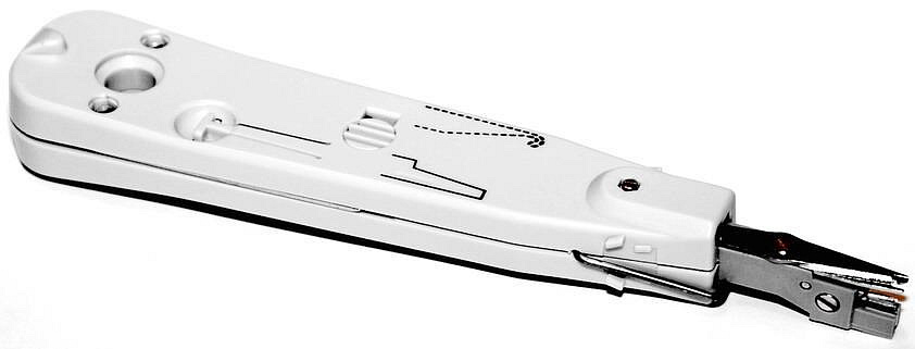 - nůžky pro automatické odstřihnutí kabelu při terminaci - nástroj pro vytažení a srovnání drátu ve svorkovnici na bocích