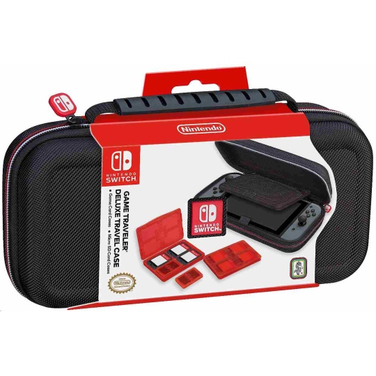 V tomto luxusním cestovním pouzdru můžete bezpečně a bez obav převážet svou oblíbenou herní konzoli Nintendo Switch™. Polstrovaný oddělovač uprostřed pouzdra chrání obrazovku konzole před poškrábáním a v síťované kapse na zip na jeho druhé straně si můžete uschovat karty s dalšími hrami.