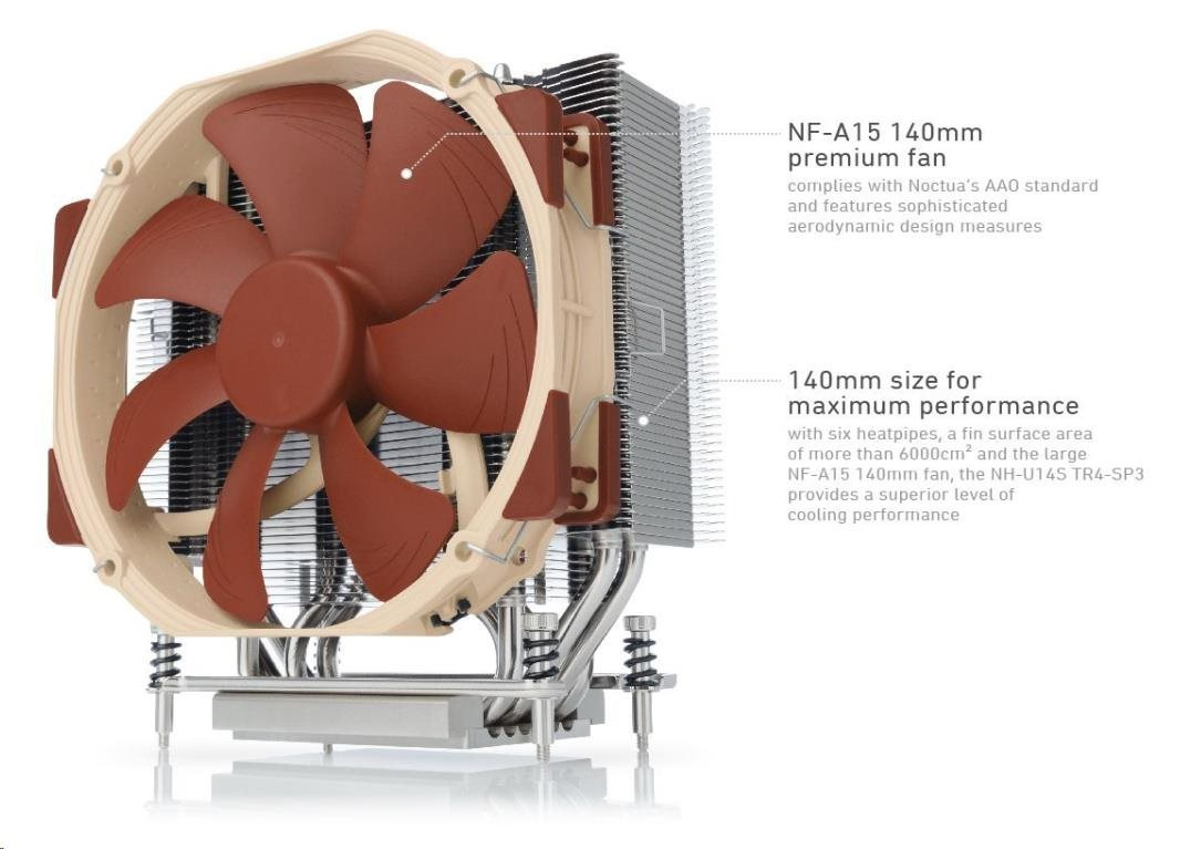 NOCTUA Chladič CPU NH-U14S TR4-SP3, 1x 140mm, sTRX4, sWRX8, TR4, SP3, hnědá/stříbrná
