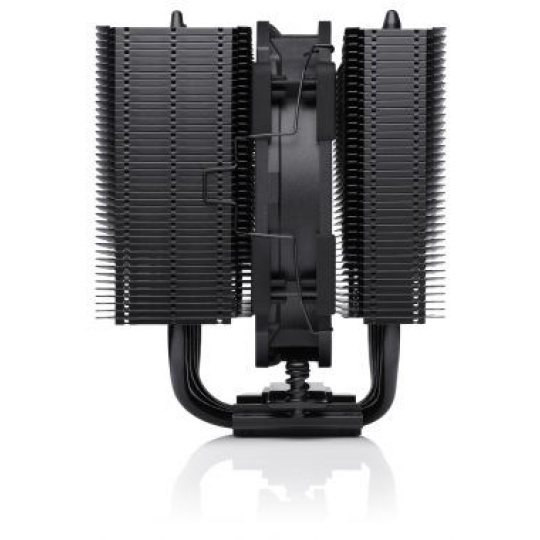 NH-D12L chromax.black je celočerná verze oceňovaného chladiče CPU NH-D12L třídy NH-D12L s nízkou výškou a 120 mm třídy, který byl navržen tak, aby kombinoval vynikající tichý chladicí výkon s vynikající kompatibilitou se skříněmi. Při výšce pouhých 145 mm (o 13 mm nižší než běžné 120mm modely Noctua) se hodí pro mnoho skříní 4U i užší věžové skříně, které byly dříve omezeny na řešení s 92mm ventilátory. Jeho pětivěžový design s pěti heatpipe a nejmodernější 120mm ventilátor NF-A12x25r zároveň umožňují dosáhnout úrovně účinnosti, která překonává mnoho 120mm modelů s plnou výškou. Díky své konfiguraci s jedním ventilátorem a asymetrickým sestavám žeber poskytuje NH-D12L 100% kompatibilitu RAM na AMD AM5/AM4 a Intel LGA1851/1700/1200 tím, že zůstává mimo paměťové sloty.