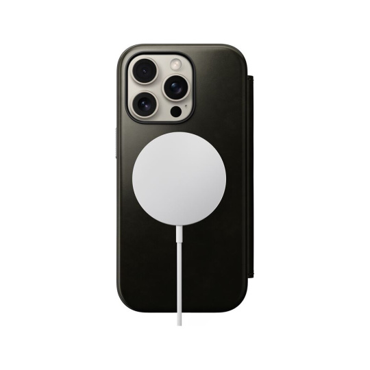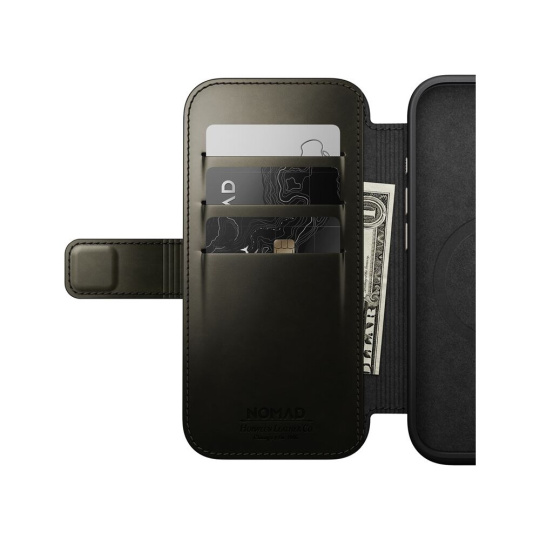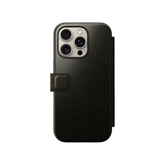 Nomad Modern Leather Folio MagSafe pouzdro iPhone 16 Pro zelené chromované