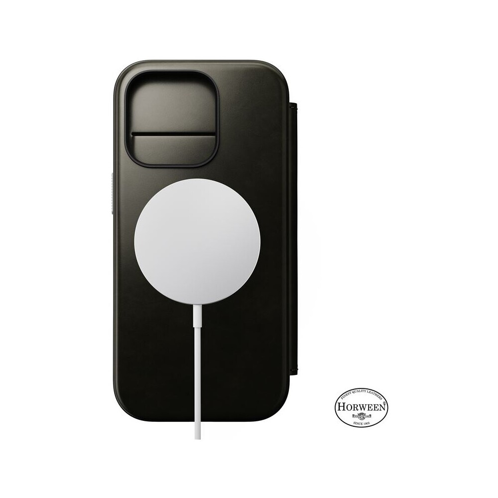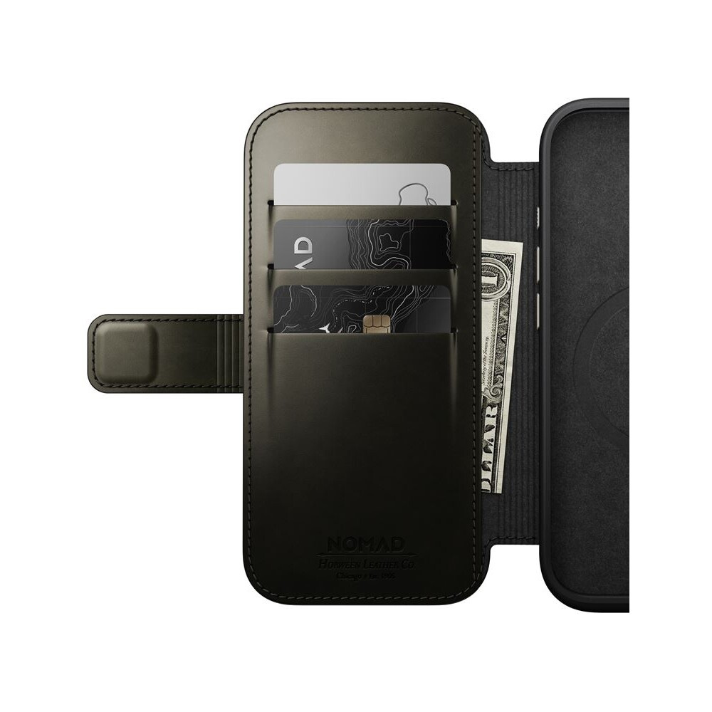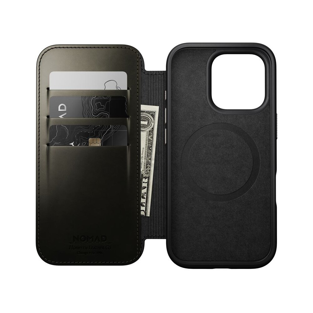 Nomad Modern Leather Folio MagSafe pouzdro iPhone 16 Pro zelené chromované