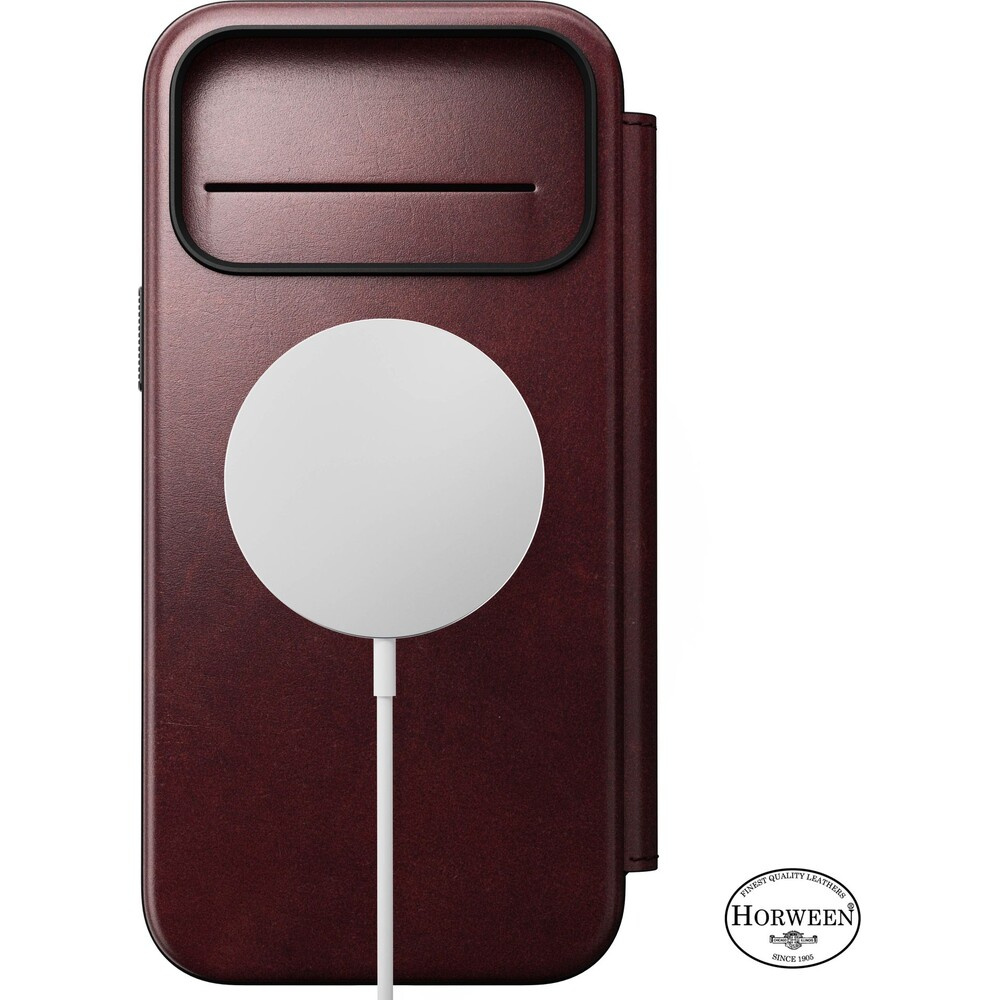 Nomad Modern Leather Folio (Horween) MagSafe kožené pouzdro iPhone 17 Pro Max Burgundy