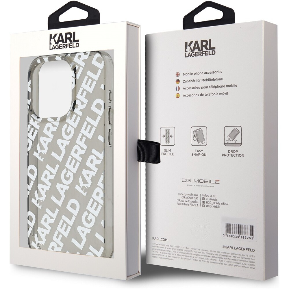 Karl Lagerfeld IML Electroplated Repeated Logo zadní kryt iPhone 15 Pro stříbrný