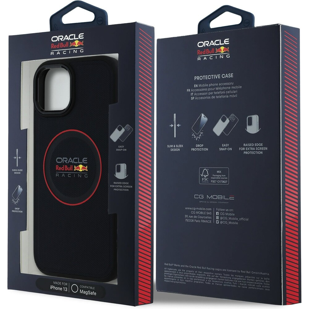 Oracle Red Bull Racing PU Leather Red Ring MagSafe kryt iPhone 13 modrý