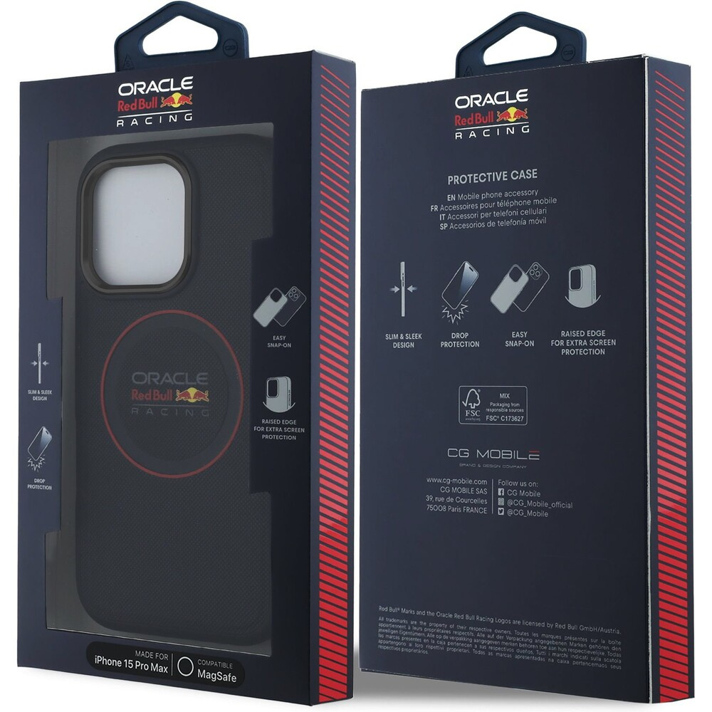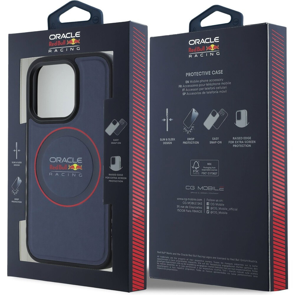 Oracle Red Bull Racing PU Leather Red Ring MagSafe kryt iPhone 15 Pro Max modrý